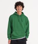 Drop shoulder style. Soft cotton faced fabric. Double fabric hood with self colour drawcord. Front pouch pocket. Ribbed cuffs and hem. Twin needle stitching.