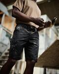 Hardwearing polyester/cotton twill fabric with water repellent coating, Multi pocket design, Part elasticated waistband, Triple stitched seams with reinforced crotch, Belt loops, Zip fly opening Metal Shank button to CF fasten, 2 Front pockets 1 side cargo pocket button fasten, 2 rear pockets, Side leg Ruler pocket, D-ring attachment, Hammer loop