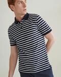 Heavyweight jersey poloshirt, Flat knit collar and cuffs, Contrast single jersey collar stand and under placket, Three button placket with navy buttons, Twin needle stitching at hem, Herringbone taped side vents, Tag free