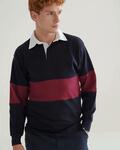 Tag free retro rigby shirt, Cut and sew contrast stripe panel around centre, Contrast traditional woven rugby collar, Herringbone back neck tape, Contrast herringbone taped side vents, Taped shoulders, Elastane reinforced ribbed cuffs for shape retentions, Twin needle hem