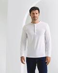 Roll sleeve with button and tab fastening on the upper arm, Round neck with three button placket, Ribbed bound neck and cuffs, Soft and stretchy fabric feel